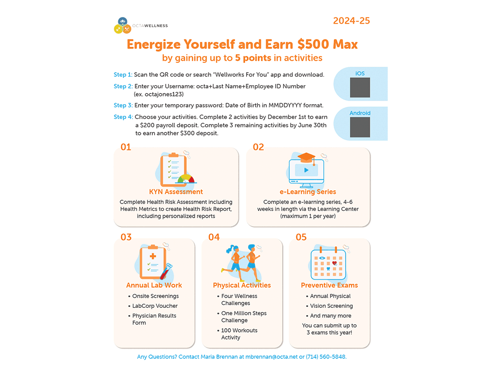 Orange is one of the colors OCTA has frequently used in its marketing materials. This bright shade of orange is selected to reflect the theme of “Energize” for the new Wellness campaign.